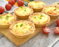 Тарталетки с крабовыми палочками ставим в чашу аэрогриля. Отправляем чашу в аэрогриль. Тарталетки с крабовыми палочками ставим в чашу аэрогриля. Отправляем чашу в аэрогриль. Включаем аэрогриль на 170 градусов, время устанавливаем - 6 минут.