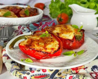 Фаршированный перец, запечённый в аэрогриле, можно подать к столу в качестве полноценного обеда или ужина. ... Половинки перца, фаршированные мясным фаршем и рисом, выложить на дно чаши аэрогриля. Половинки перца, фаршированные мясным фаршем и рисом, выложить на дно чаши аэрогриля.