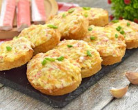 Отправляем чашу с бутербродами с крабовыми палочками в аэрогриль. Включаем аэрогриль на 170 градусов, время выставляем 8-10 минут. Я готовила бутерброды 10 минут в аэрогриле мощностью 1400 Ватт. Отправляем чашу с бутербродами с крабовыми палочками в аэрогриль.