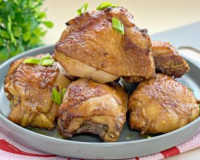 Недавно запекла в аэрогриле куриные бёдра, предварительно замариновав их в соевом соусе. ... Отправляем чашу в аэрогриль, устанавливаем температуру на 200 градусов, время - на 35 минут (мощность аэрогриля у меня - 1400 Ватт).