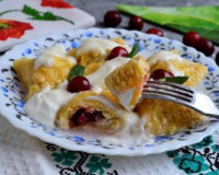Замесить мягкое и нежное творожное тесто, которое будет чуть липким. Замесить мягкое и нежное творожное тесто, которое будет чуть липким. ... Накрыть вишню верхней частью теста, концы хорошенько слепить. Накрыть вишню верхней частью теста, концы хорошенько слепить.
