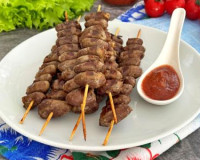 Приготовить его совсем несложно. Я замариновала куриныесердечки в соевом соусе, поэтому они получились очень вкусными и пикантными. Такой шашлык на шпажках можно подать и как самостоятельное блюдо, и с любым гарниром или свежими овощами. Для приготовления куриных сердечек на шпажках на мангале потребуется: куриныесердечки - 700 г; соевый соус - 6 ст. л.; чеснок - 2 зубчика; соль - щепотка; лимон - 1/2 шт. деревянные шпажки - 12-14 шт.