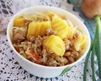 Недавно приготовила картошку, тушёную с квашеной капустой и фаршем. Блюдо получилось сытным, аппетитным и очень вкусным. ... Подготовить продукты для приготовления картошки, тушёной с квашеной капустой и фаршем. Картошку и лук почистить.