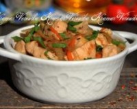 Когда капуста, тушёная с курицей и овощами, будет готова, добавить рис, хорошо перемешать. ... Капуста, тушёная с рисом и курицей, получилась невероятно вкусной и сытной.